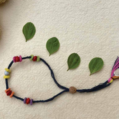 Seed Rakhi pack (with chawal and Kumkum) - Colorful Flower with sponge gaurd, Amaranthus, Purslane seeds
